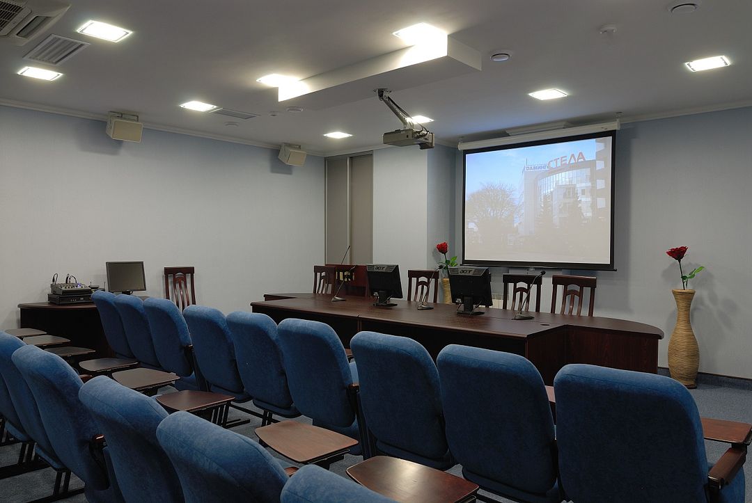 Современный конференц-зал для проведения деловых мероприятий, видеоконференций, презентаций, семинаров, тренингов и других мероприятий, оборудован всем необходимым техническим оснащением: