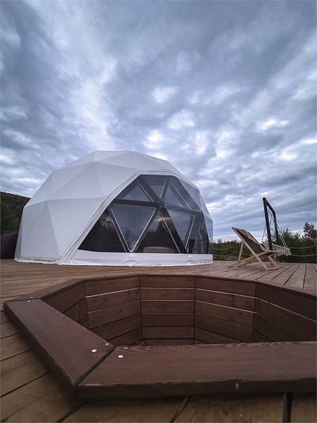 Чудесное место для отдыха, сказать что понравилось, не сказать ничего. Нас встретил приветливый администратор, всё подробно рассказала и проводила в купол. Все вопросы решаются max быстро с администратором в ватсап.