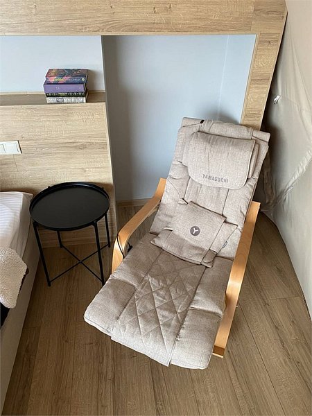 В апартаментах в вашем распоряжении будут терраса с гамаком для принятия солнечных ванн, большая двуспальная кровать и диван, подогреваемая уличная купель с аэромассажем для релакса, массажное кресло YAMAGUCHI или кресло-качалка YAMAGUCHI для оздоровления, санузел и душевая, мини-кухня с посудой и холодильником, кондиционер, комплект посуды, кулер, чайная станция и другие важные опции для полноценного отдыха.