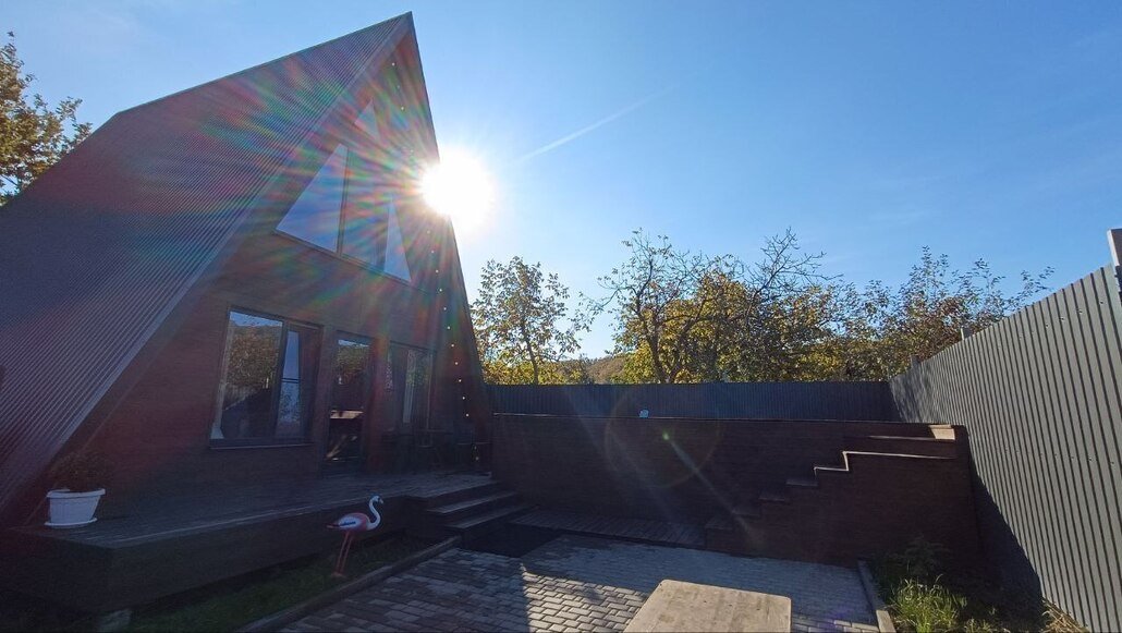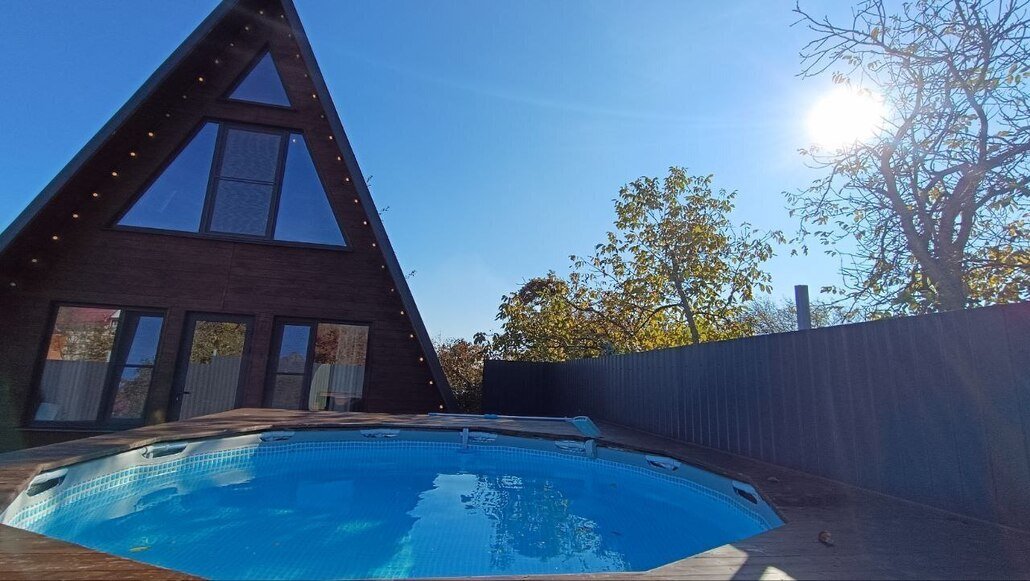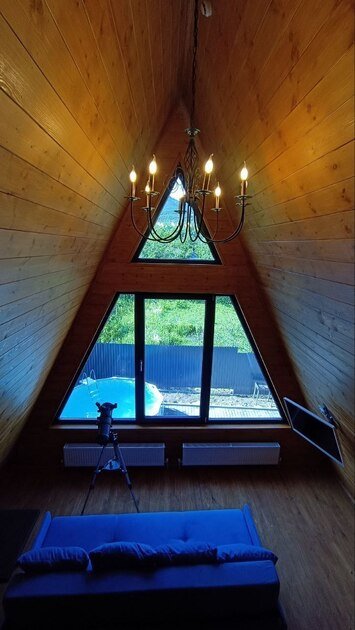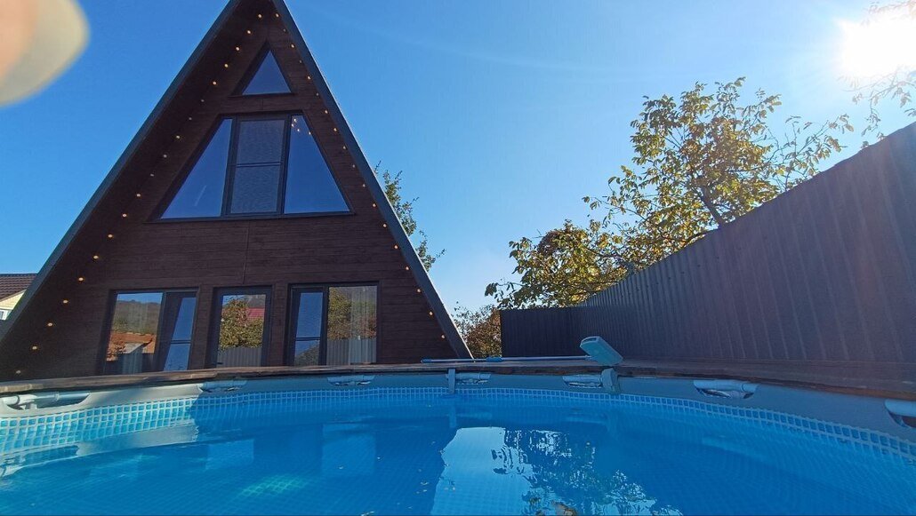 Двухэтажный треугольный дом (А-фрейм) с мансардой с потрясающим видом на Бештау и подогреваемым круглогодичным бассейном.