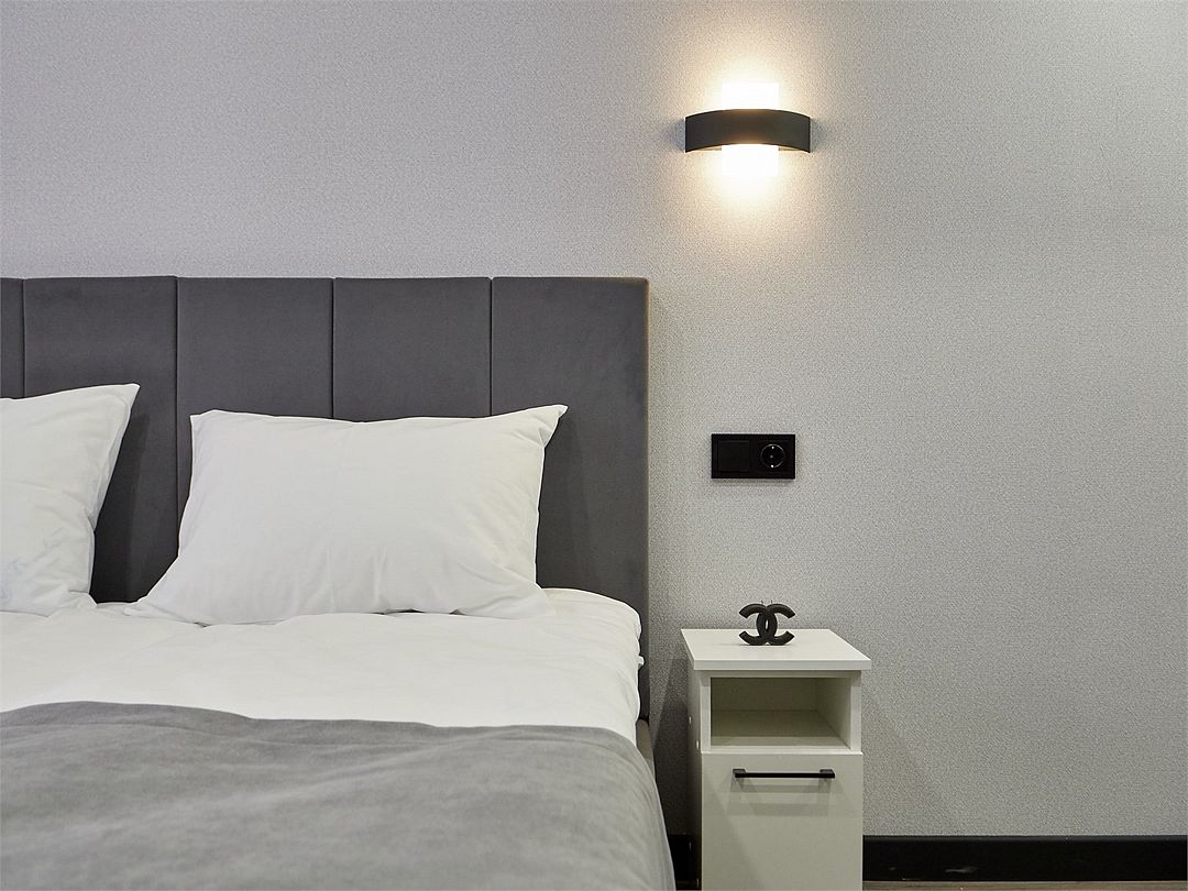 - мебель: функциональная мебель, включая кровать двуспальную, шкаф-купе, прикроватные тумбы, рабочий стол, кресло и стул;