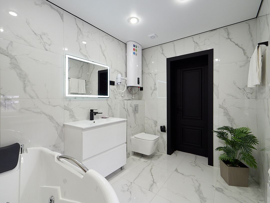 - санузел: оборудован ванной с джакузи, гигиеническими принадлежностями, халатами, тапочками, феном;