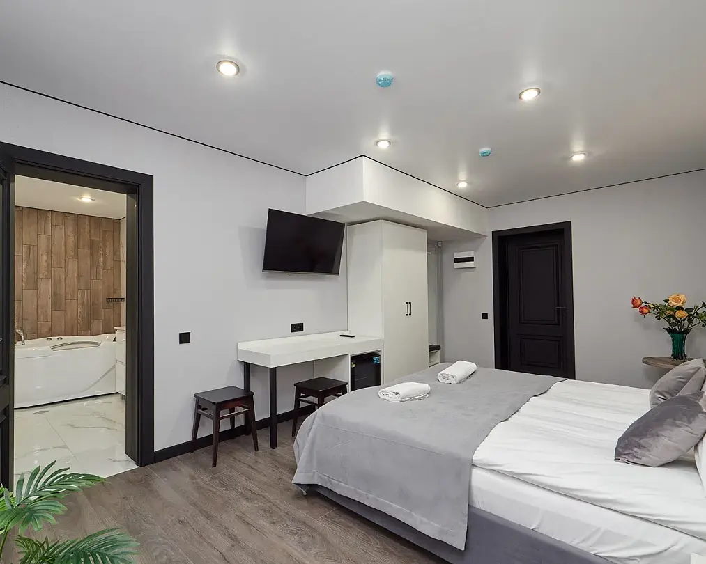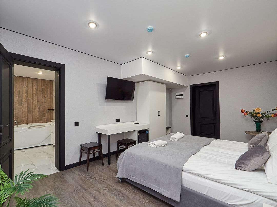 Люкс с джакузи номер отеля «Турист» в городе Кисловодск предлагает комфортное размещение гостей с оптимальным соотношением цены и качества услуг.
