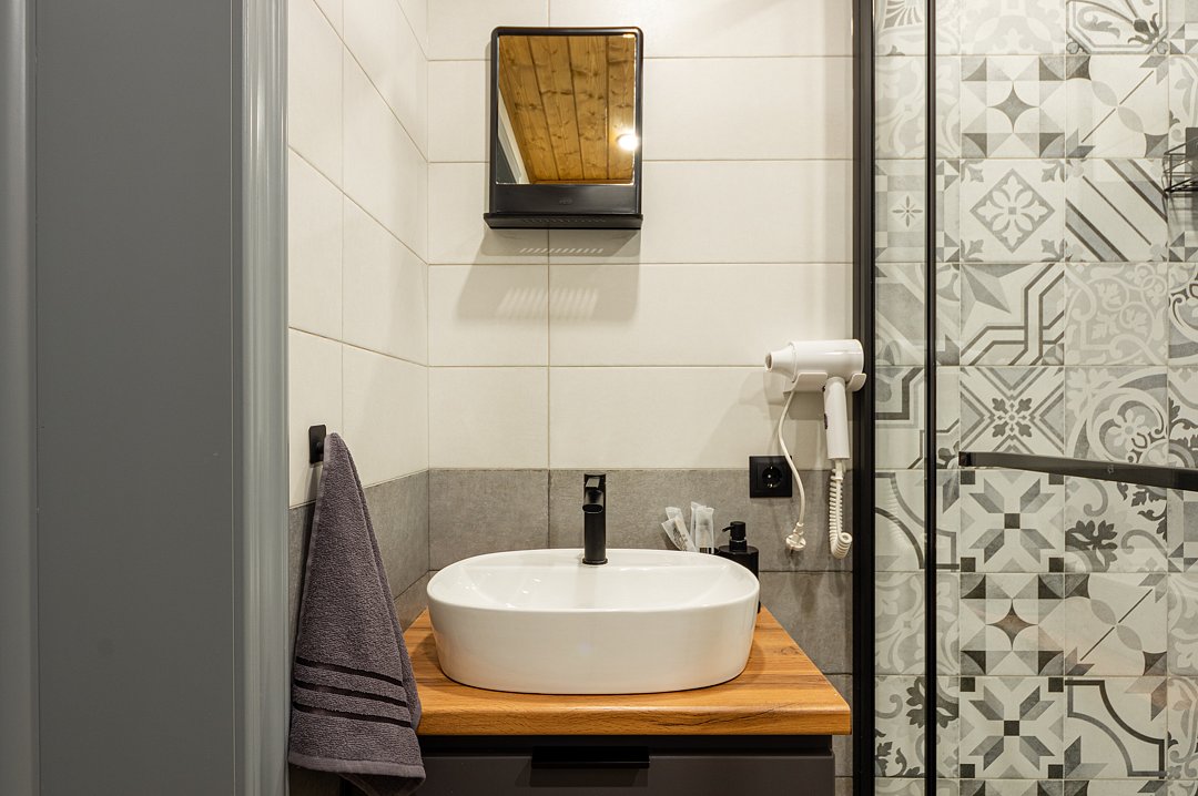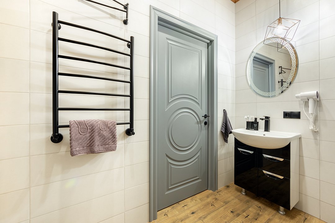 - гель для душа, шампунь, кондиционер, мыло для рук, зубные наборы и тёплые полы в ванной комнате;