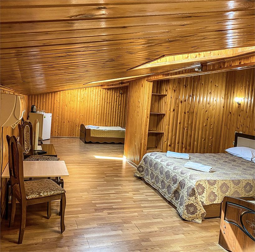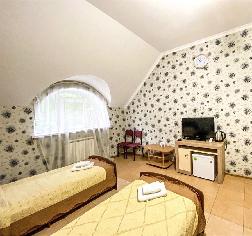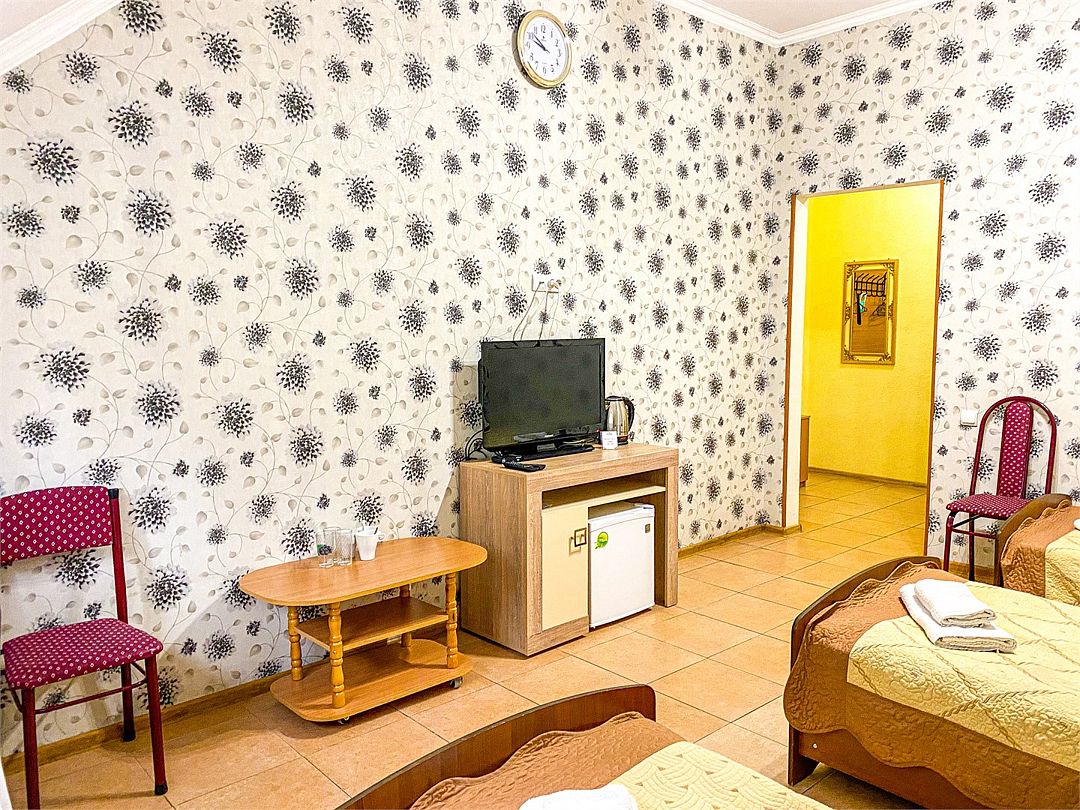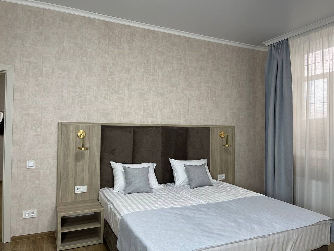 Трехэтажный корпус отеля имеет выгодное местоположение. Он разместился недалеко от пересечения улицы Кирова и пешеходного Курортного бульвара в 3 минутах езды от железнодорожного вокзала. Жилой фонд, рассчитанный на 40 человек, предлагает отдыхающим лаконичные номера Стандарт, просторные Студио и комфортабельные Делюксы. В каждом номере есть отдельный санузел с душем, бытовая техника: электрочайник, холодильник, телевизор.