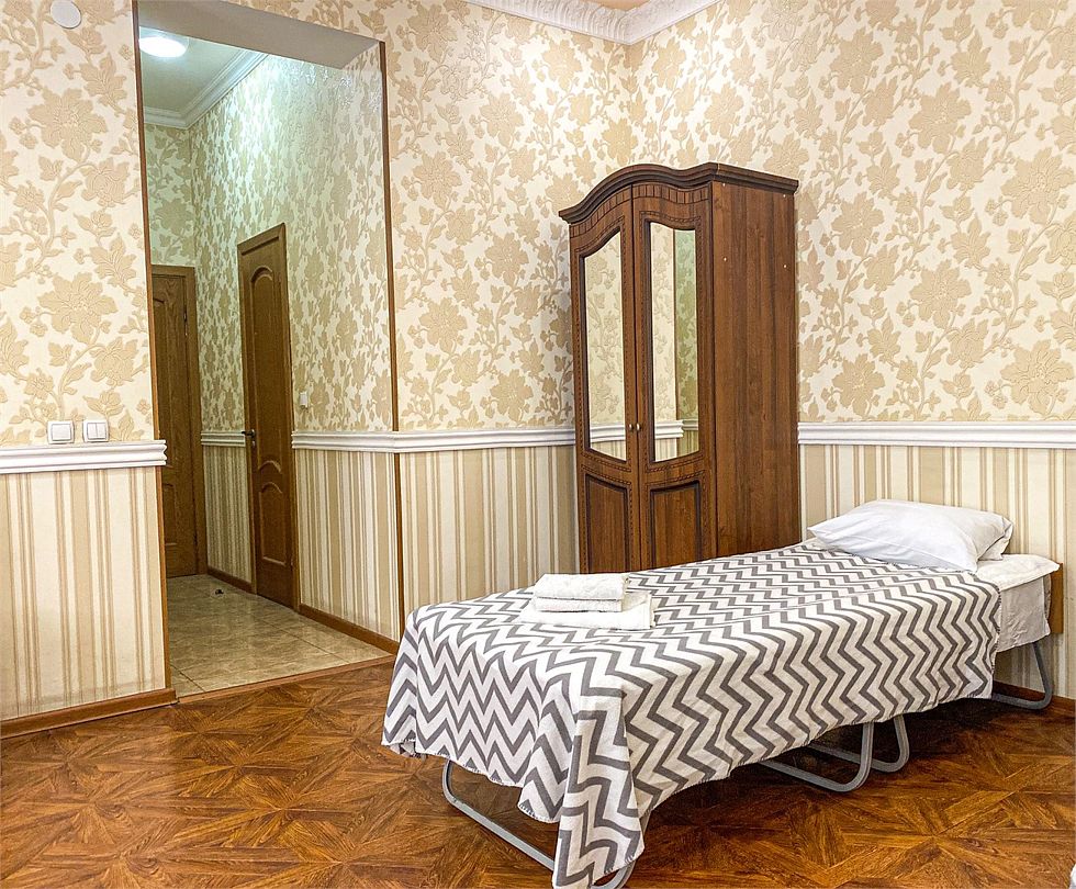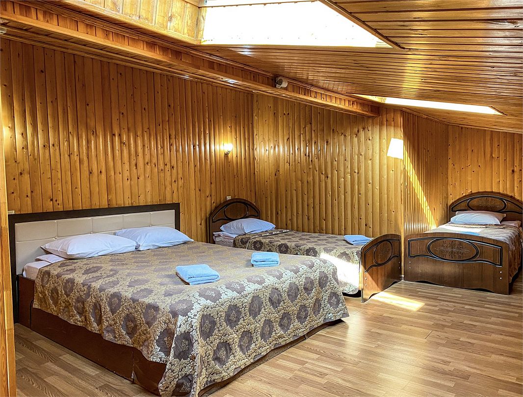 Одна односпальная кровать, одна двуспальная кровать, одна диван-кроватьВ гостиничном номере