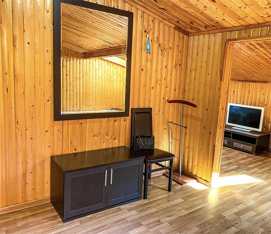 Одна двуспальная кровать,три односпальные кровати, ванная комната, холодильник, телевизор, тумба, стол, стулья, чайник, посуда, кондиционер, wi-fi