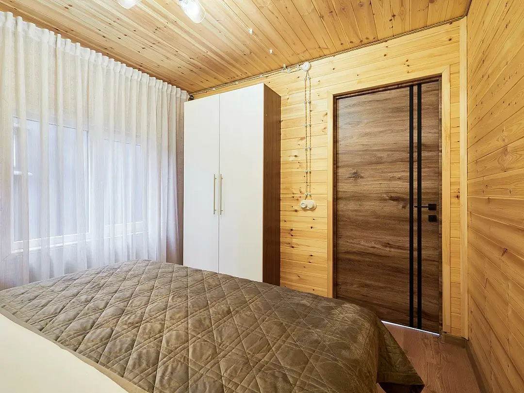 На 2 этаже имеется 2 спальни — одна спальня с кроватью односпальной, шкафом и прикроватной тумбочкой. В спальне второго этаже стоит одна двуспальная кровать, шкаф и прикроватные тумбочки.