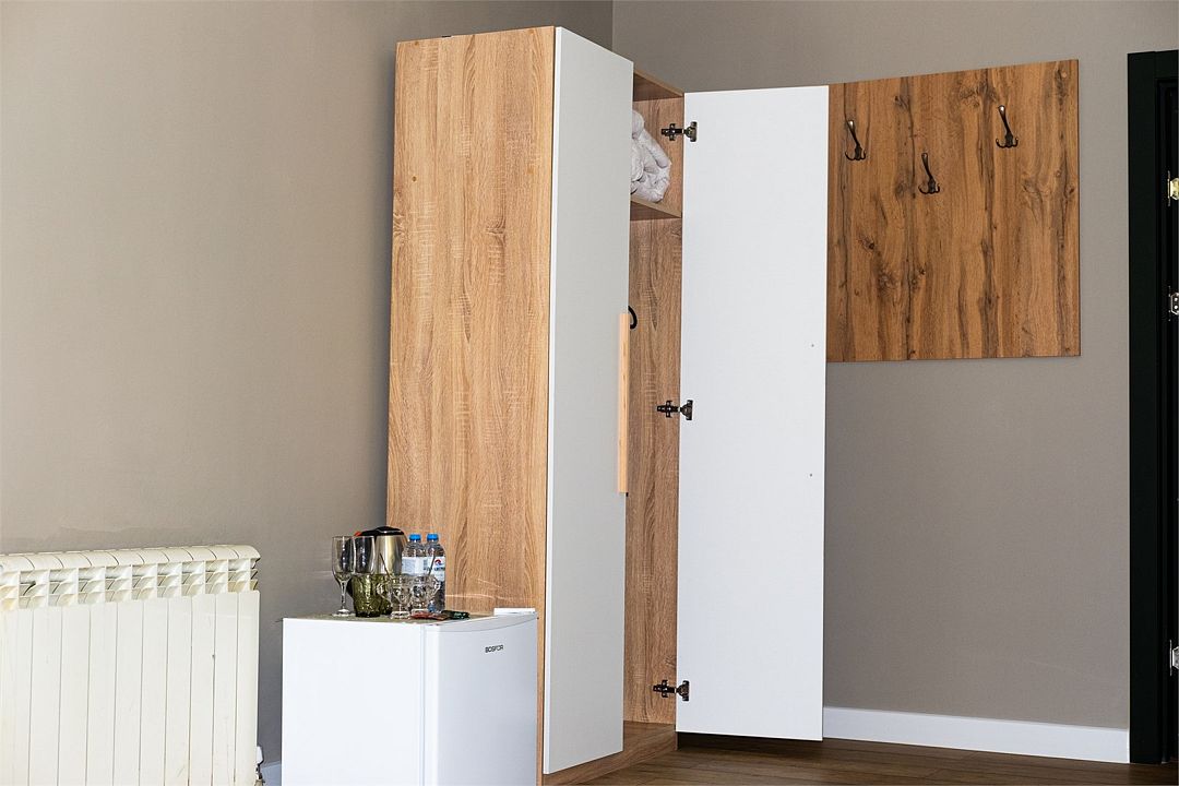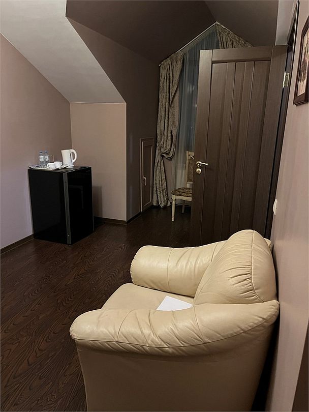 Путешествие с паройУютный небольшой отель со вкусными завтраками.Уютный небольшой отель со вкусными завтраками. Кто-то видит гаражи из окон, а мы поднимали взгляд выше и любовались Эльбрусом. Номер чистый, большой , со свежим ремонтом. В номере есть все: холодильник, телевизор с большим экраном, фен, одноразовые принадлежности: тапочки, зубная щетка и паста, мыло , шампунь.