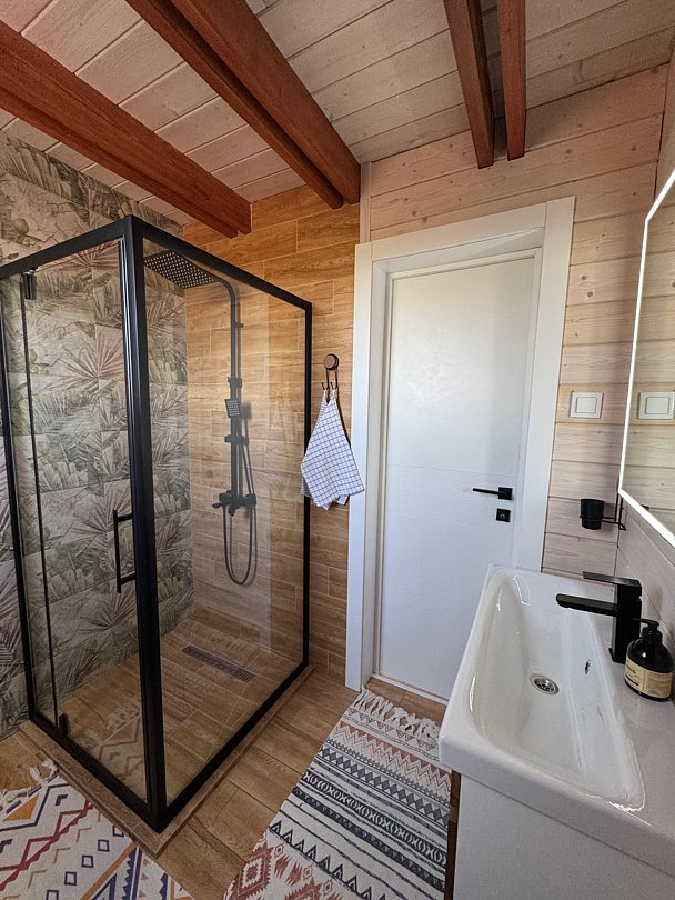 Территория полностью закрыта под одну компанию и включает уютный дом в стиле бохо с выходом на смотровую террасу, рассчитанный на размещение до 8 человек. Гостям предоставляется сервировочная посуда, постельное бельё, пледы, полотенца, тапочки, зубные наборы и ванные принадлежности. Просторная крытая веранда с панорамным обзором вмещает до 30 гостей.