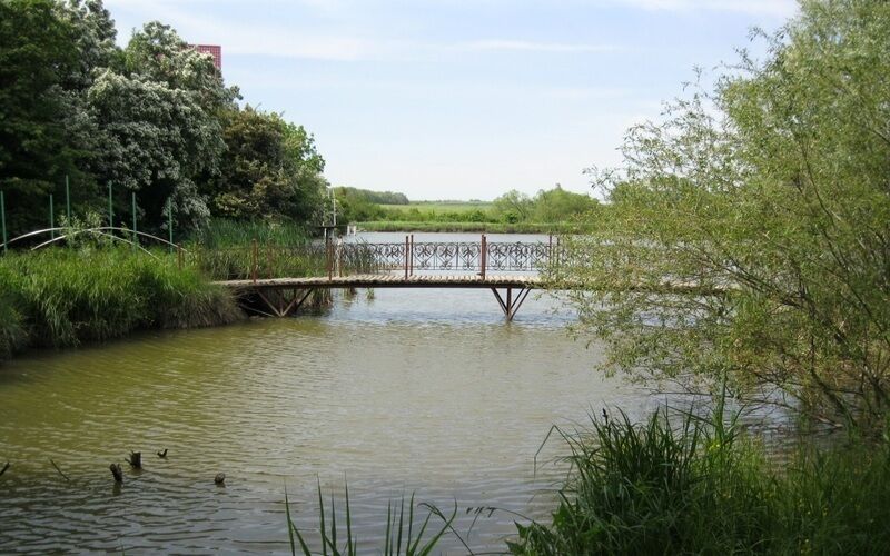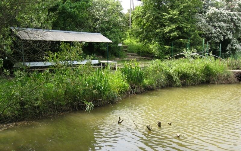 На территории базы находится пруд и множество ручьев и подземных источников, которые питают пруд. База построена в сочетании с природным ландшафтом, здесь очень тихо и уютно. Это прекрасное место для спокойного семейного отдыха. Пруд пригоден для купания, обустроен песочный пляж и множество беседок со всеми удобствами (холодильник, столы, мангал, электричество), можно порыбачить или отметить какое-либо событие в летнем кафе. Есть возможность аренды лодки и катамарана для катания по пруду. Для желающих работает бильярд.