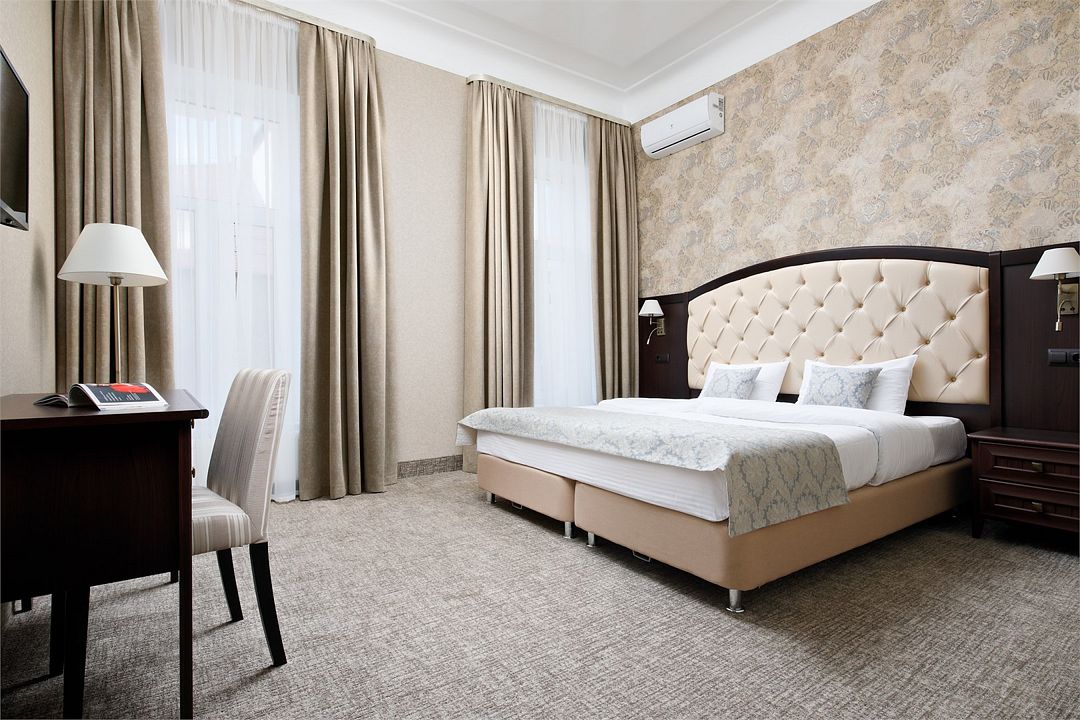 телевизор, кабельное телевидение, Wi-Fi, кондиционер, светильник, фен, электронные замки, душевая кабина, пляжные полотенца, гигиенические средства, балкон, балкон с красивым видом, две односпальные или большая двуспальная кровать, тумбы, шкаф для одежды, вешалки, письменный стол, зеркало, свежая пресса, сейф, чайник, унитаз, раковина, косметическое зеркало, ковровое покрытие, душ, вид на город, кулер на этаже, стаканы, стул, стол, туалетные средства, туалет, сплит-система, телевизор с плоским экраном, мини-холодильник, вид на горы, номер для некурящих, рабочий стол, чайная станция, набор для приготовления чая и кофе, мыло, без питомцевВ гостиничном номере