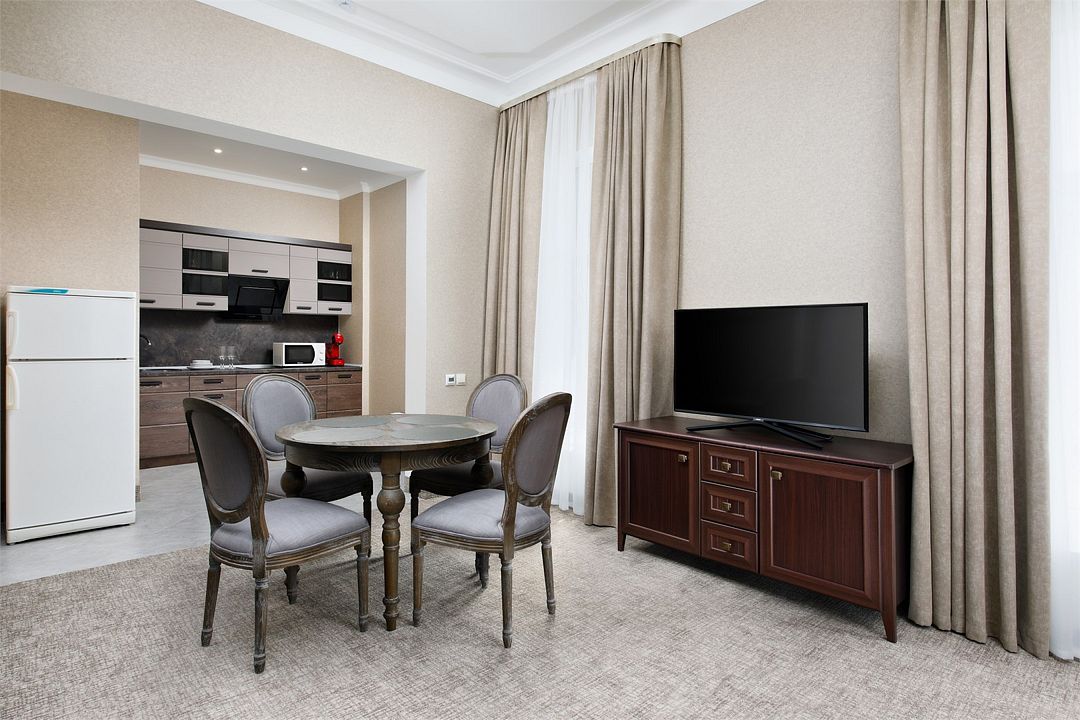 два телевизора, кабельное телевидение, Wi-Fi, холодильник, светильник, настольные лампы, кулер, фен, электронные замки, плита для приготовления пищи, кофемашина, микроволновая печь, утюг, душевая кабина, ванна или душевая кабина, теплый пол, банные принадлежности, халаты, банные полотенца, тапочки, гигиенические средства, косметические средства, балкон, балкон с красивым видом, двуспальная кровать, гладильная доска, диван, кресла, тумбы, стулья, шкаф для одежды, вешалки, журнальный столик, письменный стол, обеденный стол, зеркало, комод, мебельный гарнитур, две комнаты, кухня, свежая пресса, чайный набор, набор посуды, сейф, чайник, унитаз, раковина, мягкая мебель, косметическое зеркало, питьевая вода, обеденная зона, гостиная зона, ковровое покрытие, душ, вид на город, кресло, высокие потолки, тостер, кухонная посуда, стаканы, кухонная утварь, столовые приборы, кофейный столик, стул, стол, тумба, туалетный столик, туалетные средства, туалет, сплит-система, диван-кровать, раскладной диван, раскладное кресло, телевизор с плоским экраном, вид на горы, номер для некурящих, рабочий стол, антибактериальное средство для рук, гигиенический душ, межкомнатная дверь, уборка номера, вешалки-плечики, шапочка для душа, мыло, без питомцевВ гостиничном номере