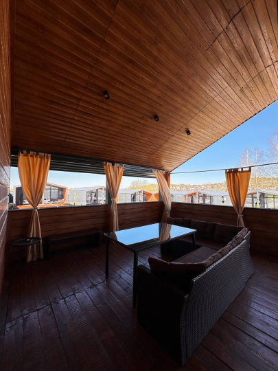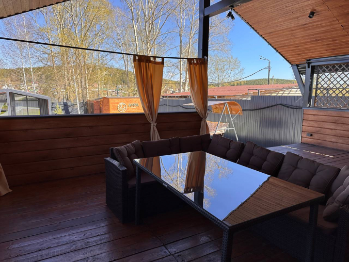 Большой «Банный Дом» с открытой террасой и всем необходимым для большой компании. Заселение гостей с 15:00, выезд до 12:00.