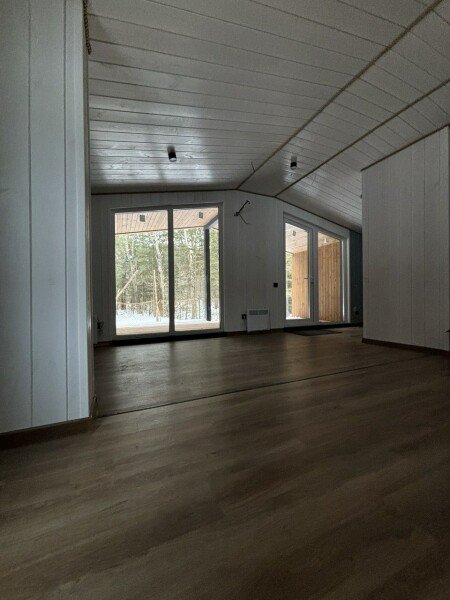 - панорамные окна с видом на хвойный лес;