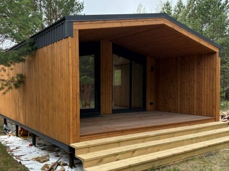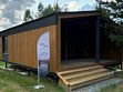 Модульная баня с печкой, комнатой отдыха и душем.