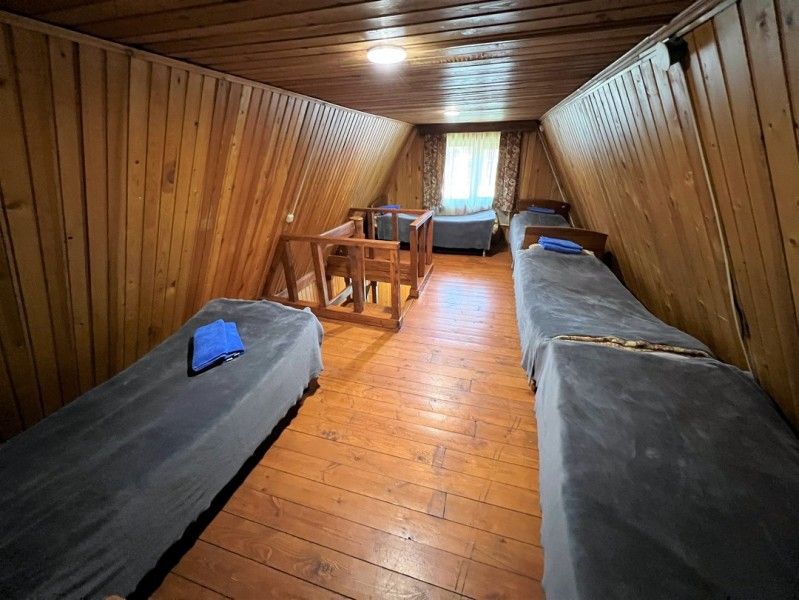 5 односпальных кроватей, туалет в номере, телевизор, зеркало.