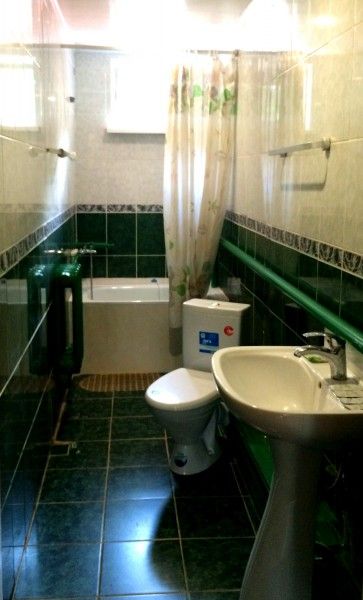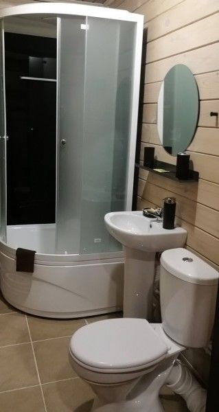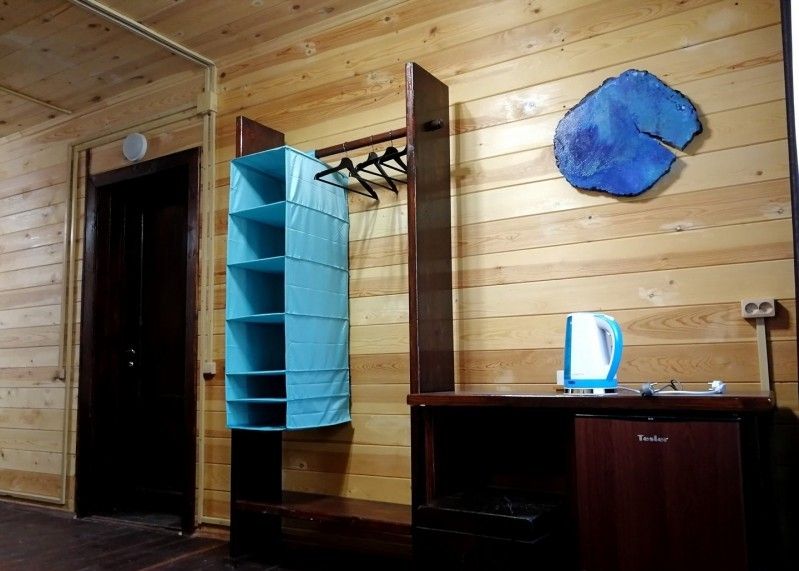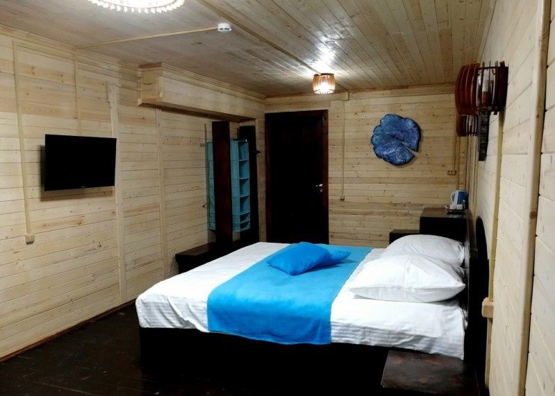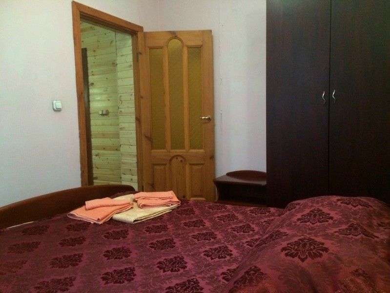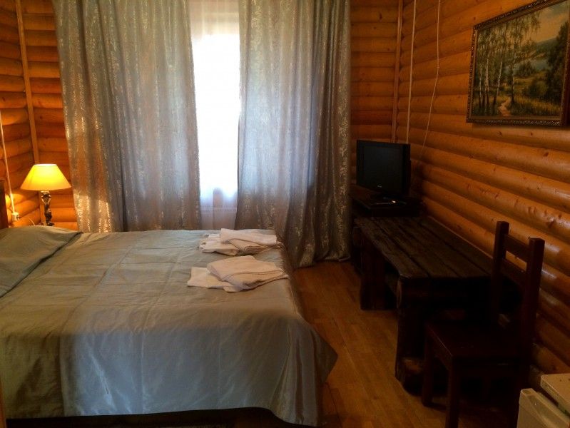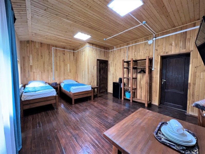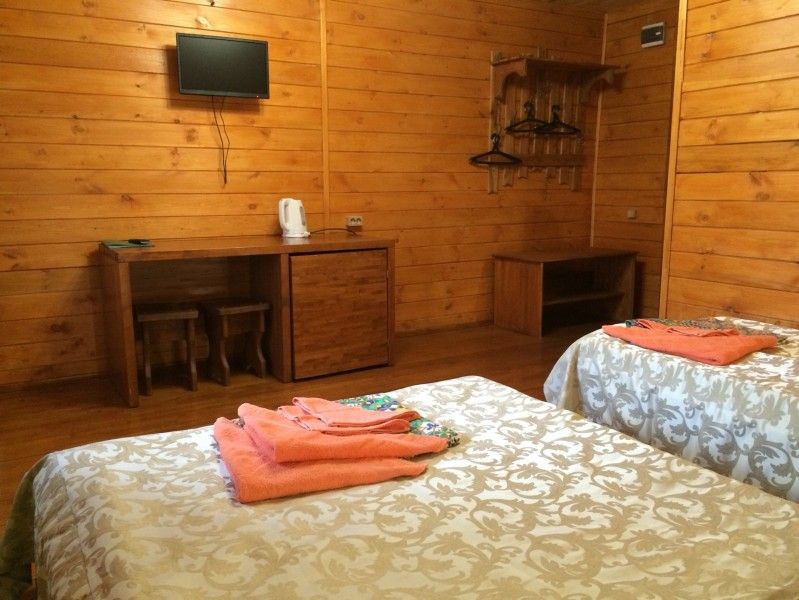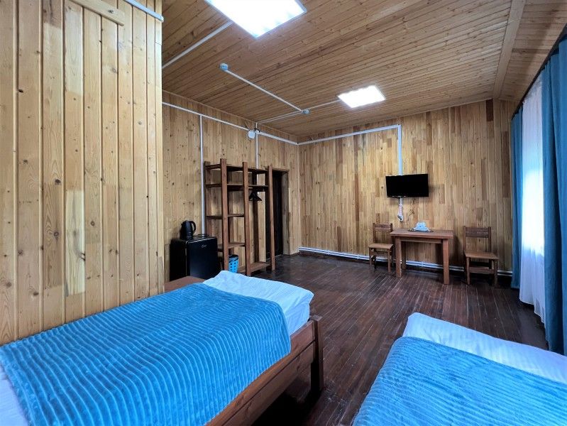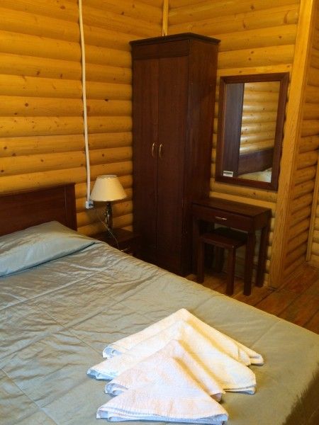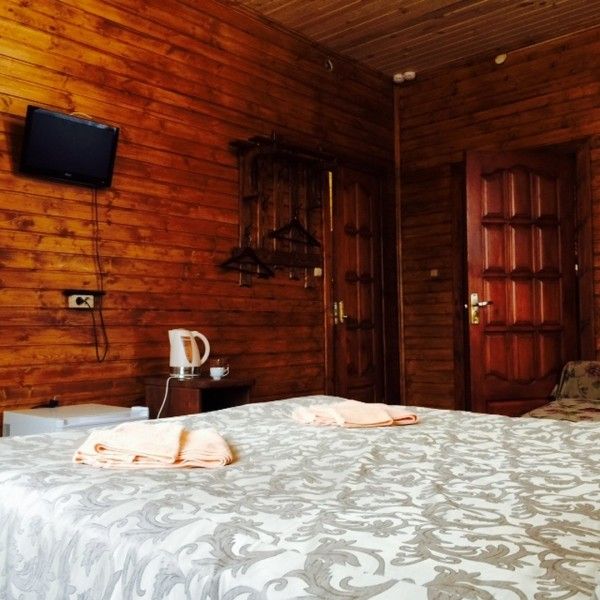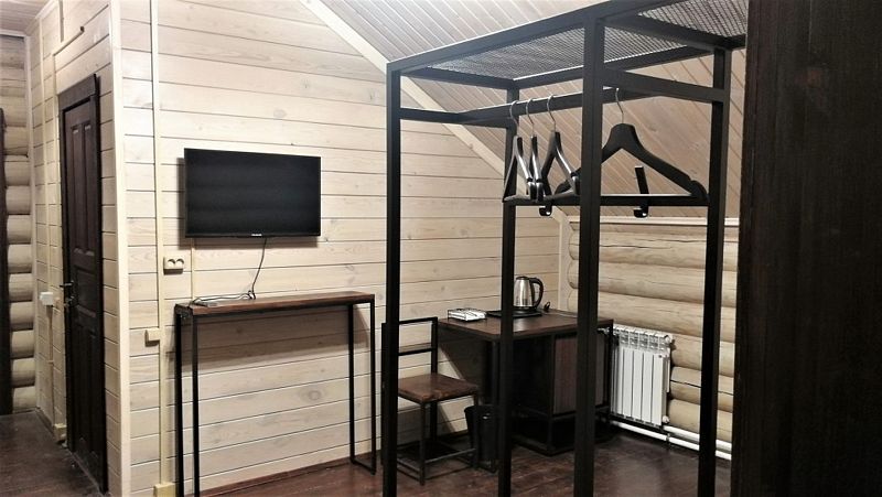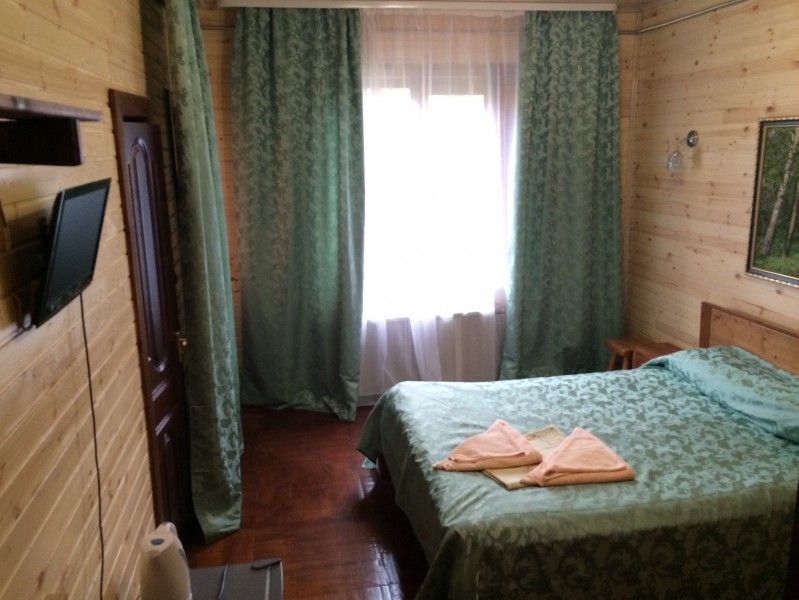 Однокомнатный номер с прихожей — двуспальная кровать, туалет и душ в номере, холодильник, телевизор + спутниковый ресивер, электрочайник, шкаф, зеркало.