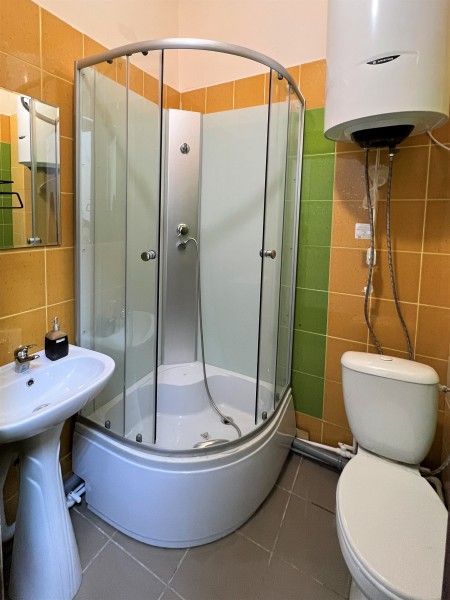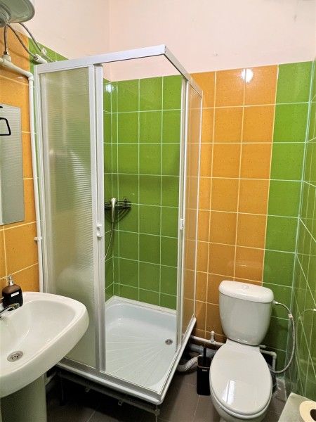 1 полутороспальная кровать,1 односпальная кровать, туалет и душ в номере, холодильник, телевизор, чайник.