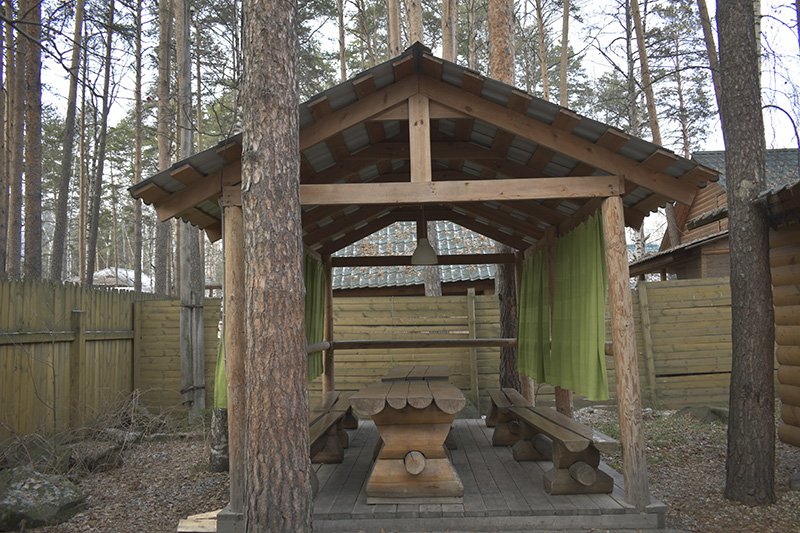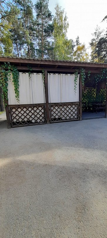 Большая беседка «Ермак 2» в загородном клубе «Пески» вмещает до 50 человек и идеально подходит для проведения разнообразных мероприятий или организации самостоятельного отдыха на свежем воздухе. Беседка располагает всем необходимым: удобными лавочками и столами, электричеством, танцевальной зоной и освещением, а также мангальной зоной и стационарными удобствами на улице для максимального комфорта гостей.