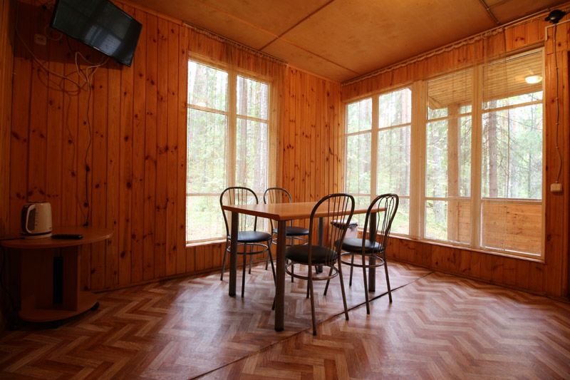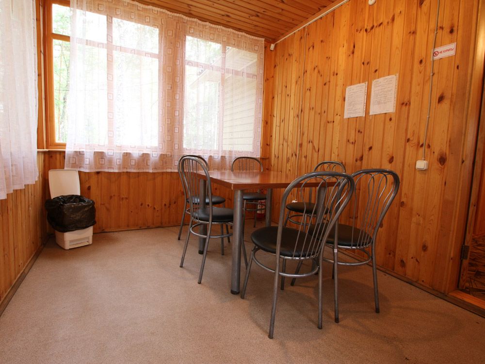 Гости базы отдыха могут воспользоваться столовой на пятдесят человек, предлагающей комплексное питание — завтрак, обед и ужин.