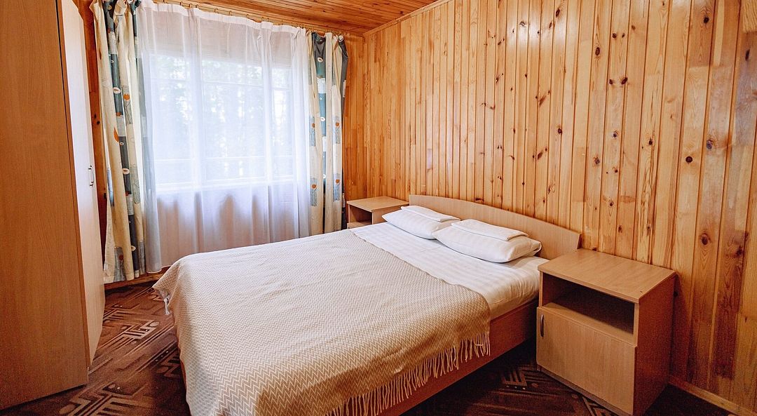 На просторной территории комплекса расположены комфортабельные одноэтажные домики и уютные гостиничные номера, оснащенные всем необходимым для приятного проживания: собственными санузлами, телевизорами и холодильниками. Некоторые домики на базе отдыха доступны только в летний сезон и не имеют собственных санузлов — удобства расположены на территории комплекса. Каждый домик оснащен собственной верандой, а рядом обустроены уютные зоны для барбекю.