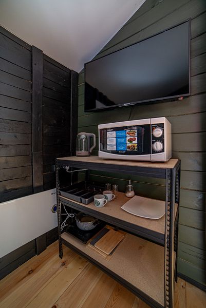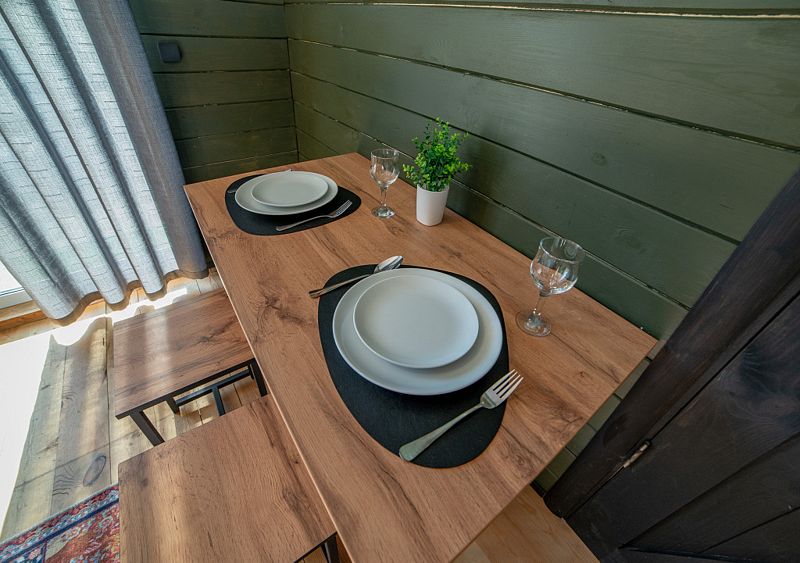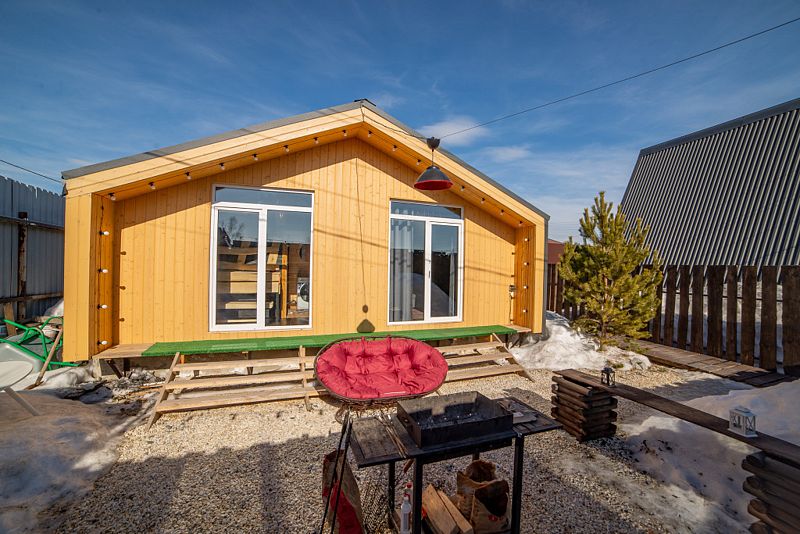 Домик оснащён всем необходимым для того, чтобы проживание было комфортным. На территории оборудована мангальная зона и уголок для отдыха на свежем воздухе.