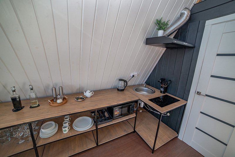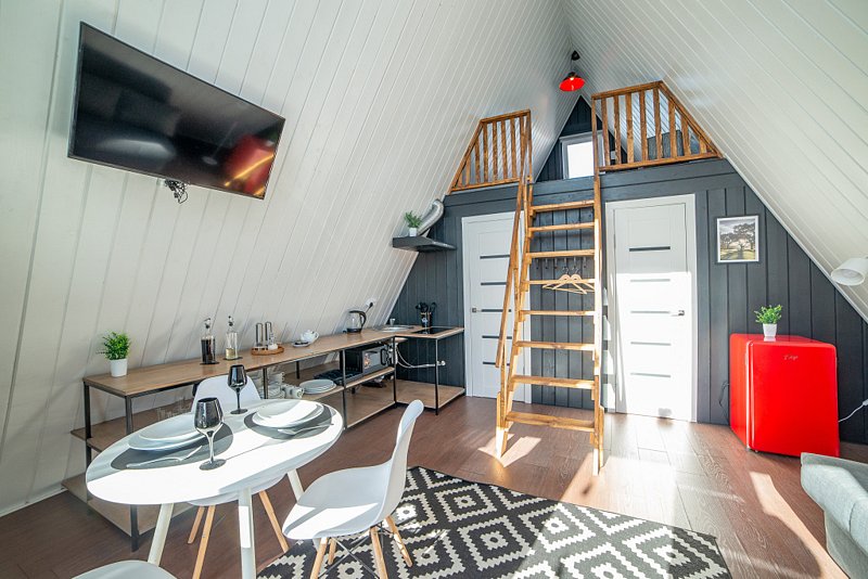 Дома типа А-фрейм оснащены всем необходимым для комфортного отдыха, в том числе Wi-Fi.