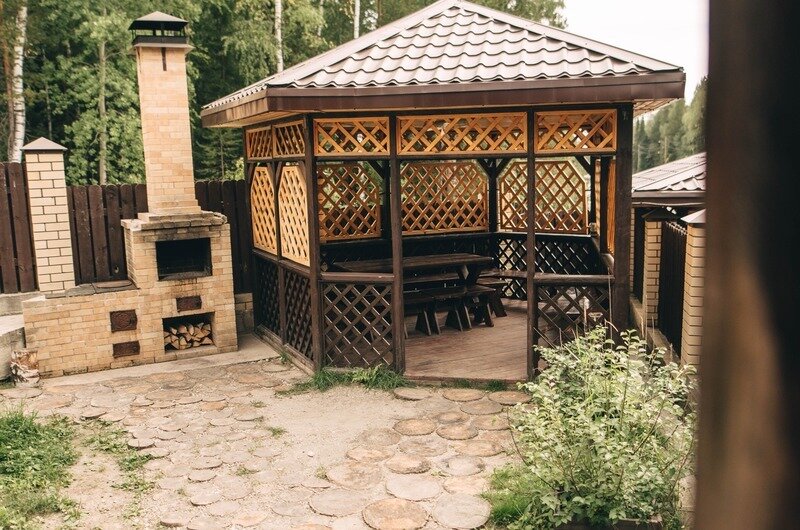 Стоимость аренды беседки 500 ₽/час (свыше 10 человек доплата 200 ₽/чел) аренда от 4 часов, В стоимость включены принадлежности для приготовления шашлыка. -
