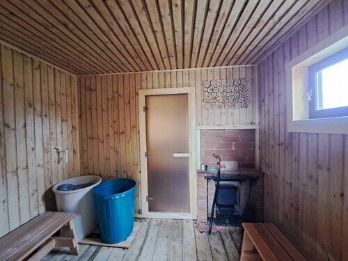 Минимальное время аренды: 2 часаРусская баня поможет восстановиться после прогулок по лесу, сбросить усталость и помыться. Насладиться паром бани поможет просторная парилка, чистая вода и камни с реки Вижай, которые известны своими полезными свойствами. Вместимость: 6 человек.