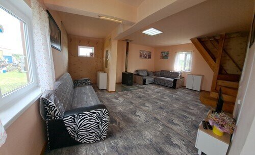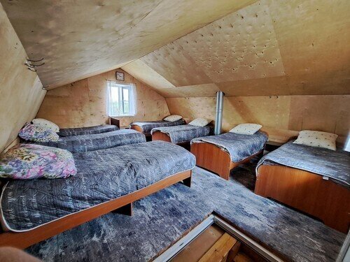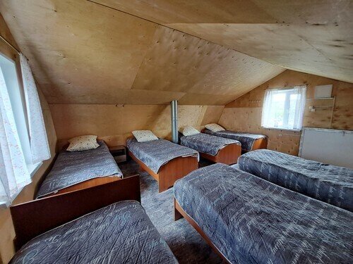 Двухэтажный гостевой дом оптимален для проживания большой группы. Это комфортный дом с уютной, большой спальней и гостиной.