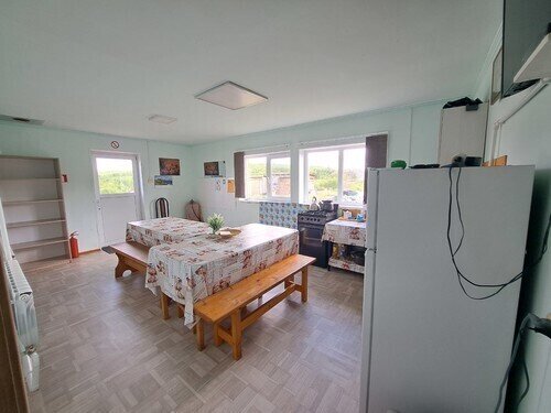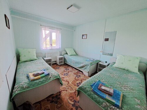 В одноэтажном гостевом доме общий коридор с отдельными комнатами, общая кухня, туалеты.