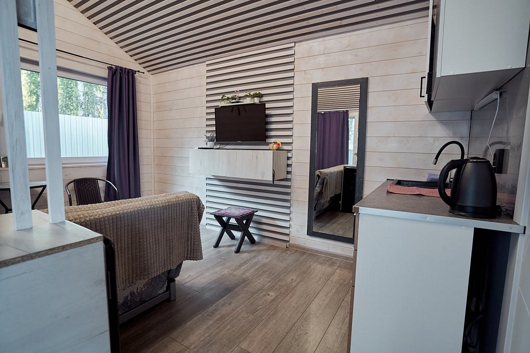 Коттеджи полностью оснащены всем необходимым для комфортного проживания и включают кухню, оборудованную бытовой техникой и набором посуды, телевизор, чистое постельное белье, современный санузел с душем и гигиеническими принадлежностями. В домах установлена система отопления.