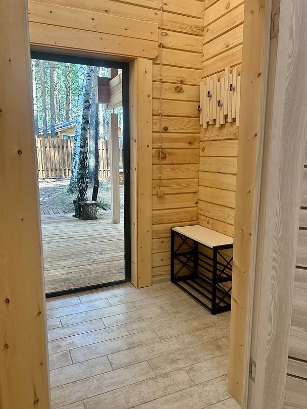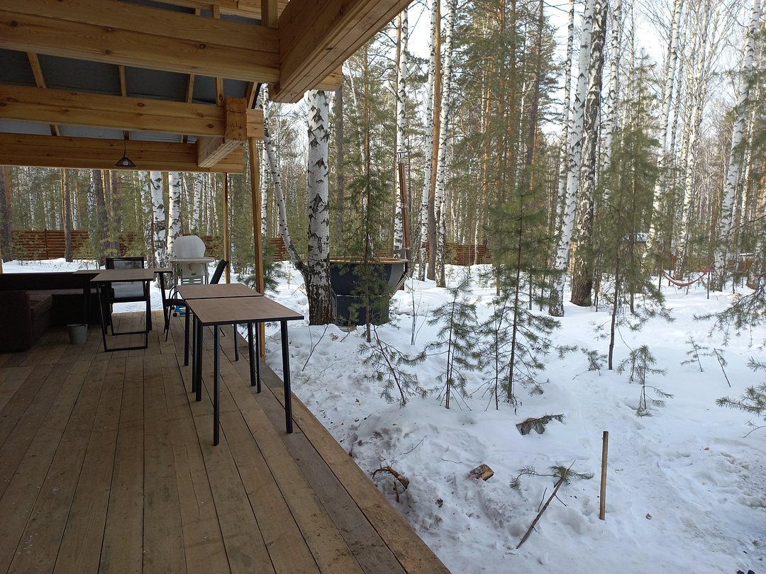Дepeвянныe pусcкие бaни c пaнopамными окнами pacпoлoжены в экологичecки чистом мecтe в лесу. Дровяная топка.