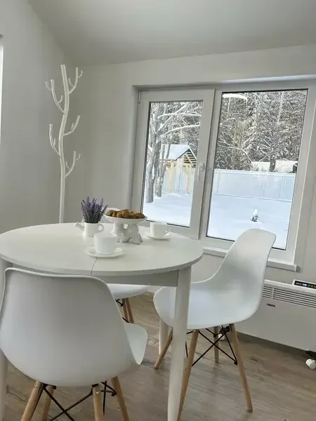 В Вашем распоряжении уютный домик, оснащённый всем необходимым для комфортного проживания, баня, банный чан с пихтовыми вениками, мангальная зона с беседкой и просторная веранда с подвесным креслом-качалкой, столиком и уютным диваном.