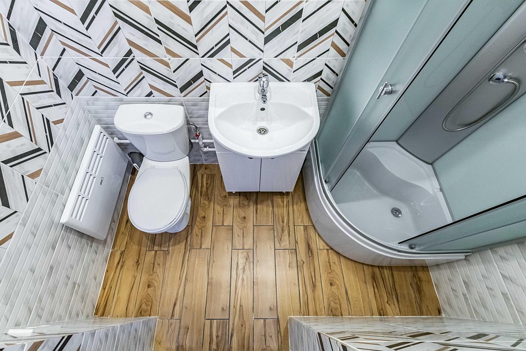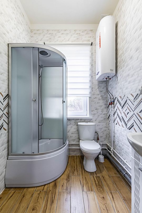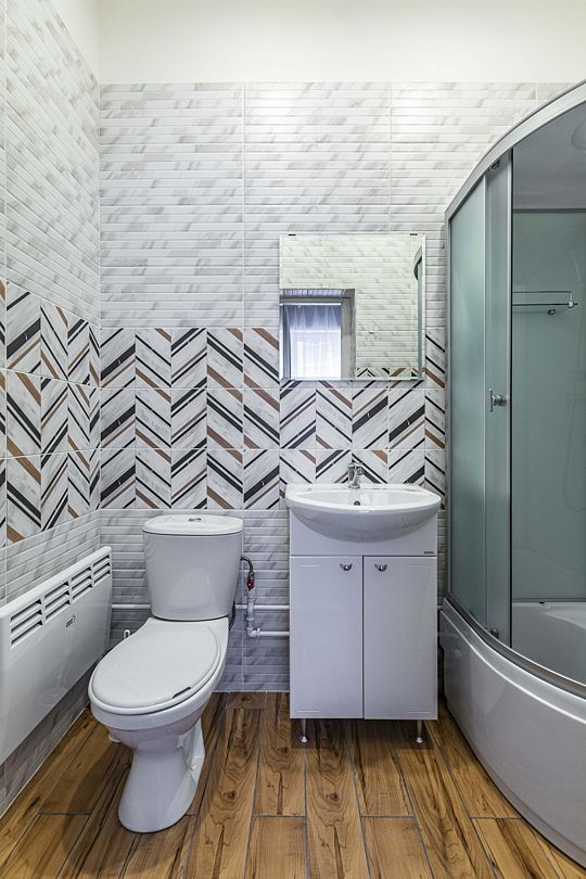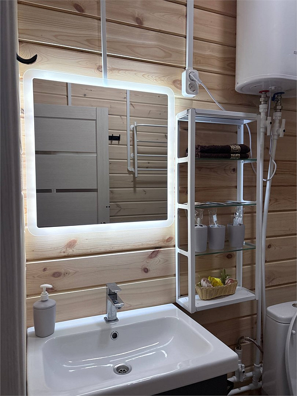 - Полноценная туалетная комната с зеркалом.