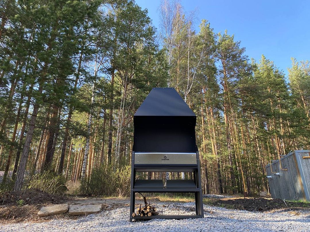 Рядом с коттеджем установлен мангал для любителей барбекю, на котором можно приготовить сочные шашлыки и другие блюда на огне.