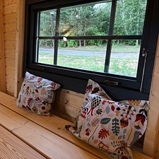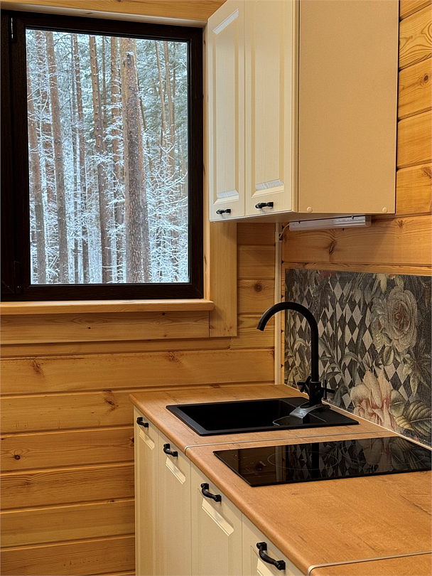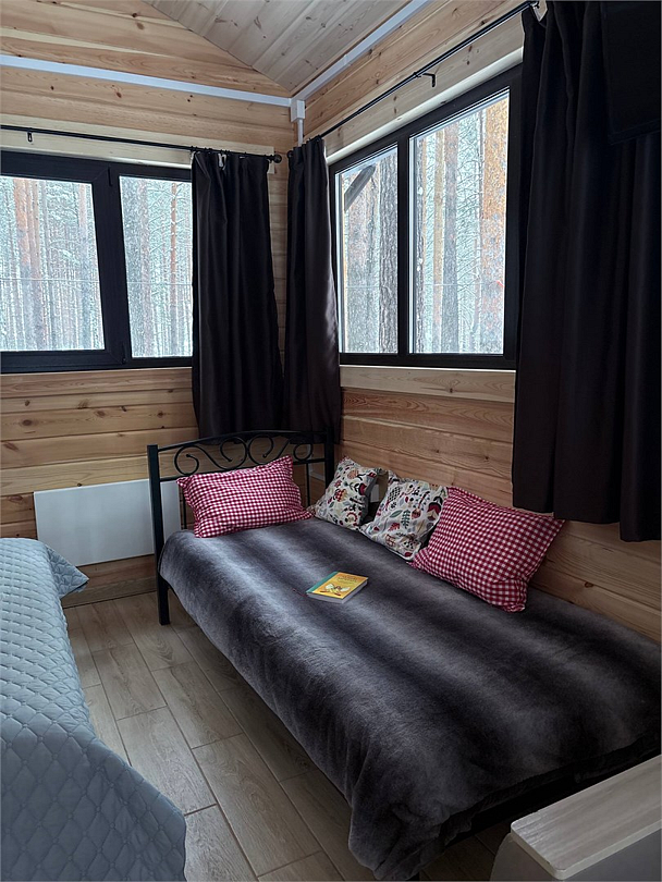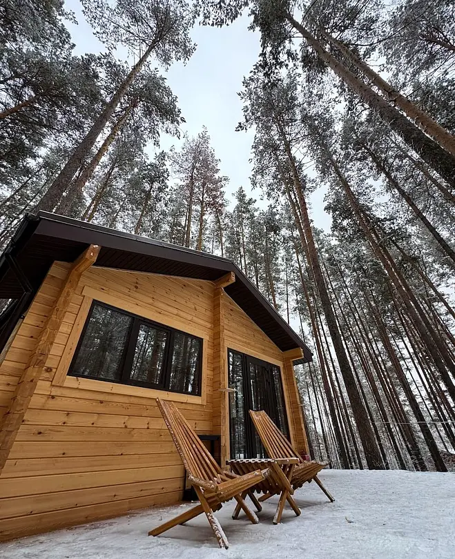 Это место для тех, кто хочет остановиться и отдохнуть по-настоящему: слушать пение птиц, вдыхать аромат хвои и чувствовать уют дерева. На просторной веранде так приятно укутаться в плед и пить горячий чай или какао, разговаривать с близкими или просто наслаждаться тишиной. В доме для вашего комфорта есть всё необходимое: — обустроенный санузел и душ; — кухня с холодильником, микроволновой печью, чайником; — вся необходимая посуда; — телевизор; — двухспальная кровать; — раскладной диван; — бойлер и горячая вода. Всё, чтобы отдых был удобным и беззаботным. Эко-дом — это природа и ощущение уюта как дома, только ещё лучше