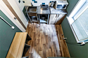 - Встроенный стол и удобные скамейки с мягкими подушками.