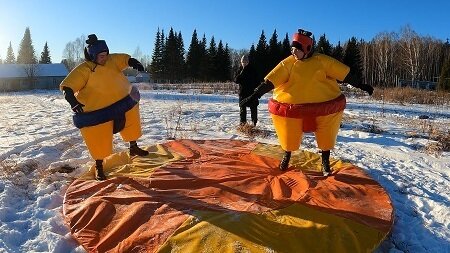 - «сумо» — одетые в надувные костюмы соперники должны заставить друг друга выступить за круг, на котором происходит состязание.