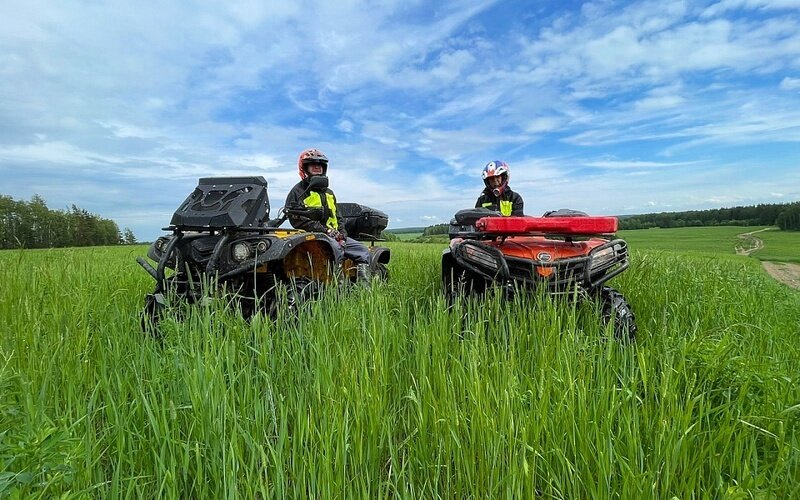 В распоряжении базы отдыха утилитарные квадроциклы китайской компании CFMOTO. В базовую комплектацию входит полноприводная трансмиссия с блокируемым дифференциалом, понижающей передачей, независимые подвески, гидравлическая тормозная система.
