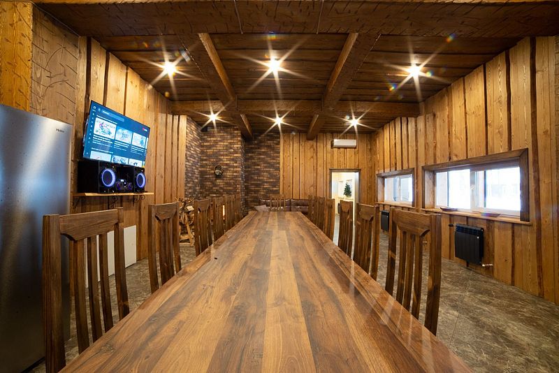 Гостям предлагается расположиться в комфортабельном доме с дизайнерским интерьером. В нем вы найдете все для хорошего отдыха! Имеется телевизор, кондиционер, высокоскоростной Wi-Fi и караоке. Для крепкого сна спальни оборудованы удобными кроватями. А два санузла оснащены новой сантехникой. Помимо этого, в доме имеется настоящая русская баня на дровах, посещение которой обеспечит вам настоящее расслабление.