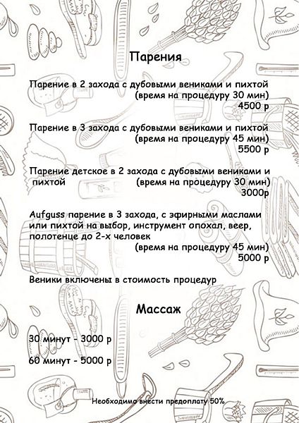 3 часа бани включено в стоимость!