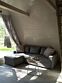 Спальный диван на первом этаже, отдельная комната и большая кровать на втором этаже.