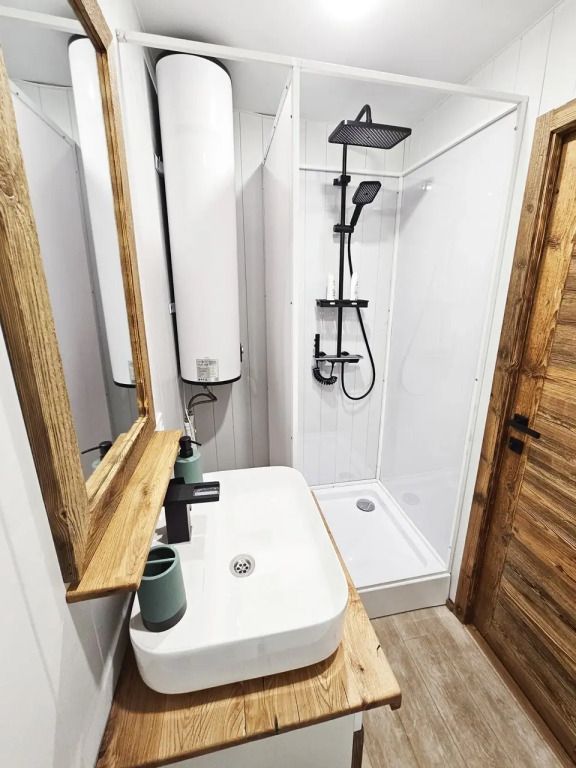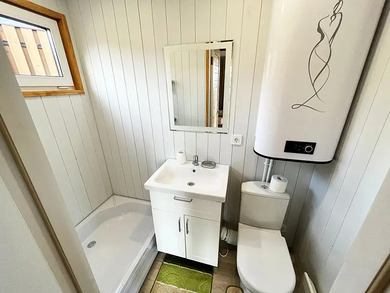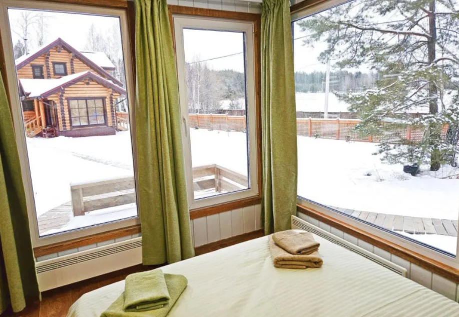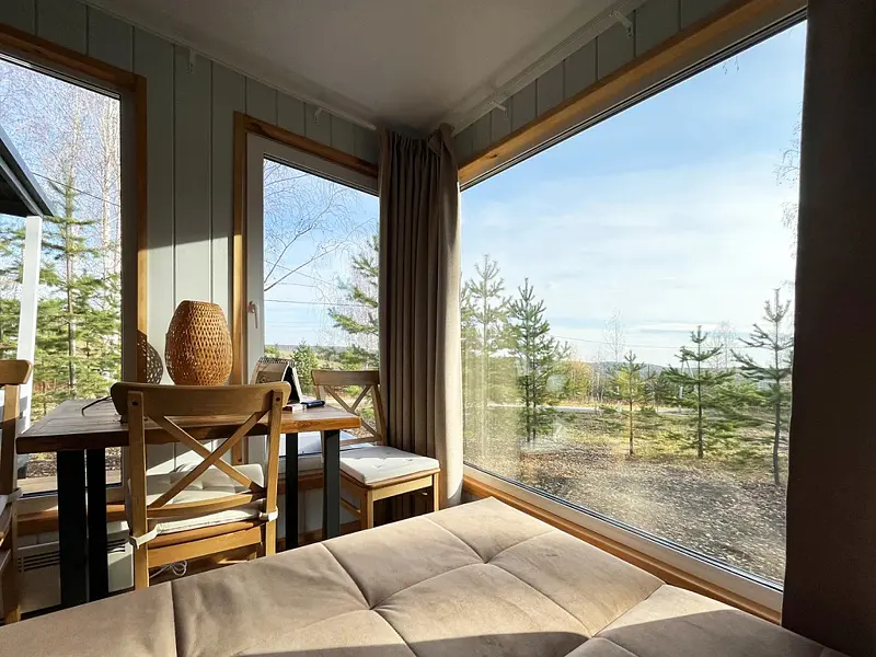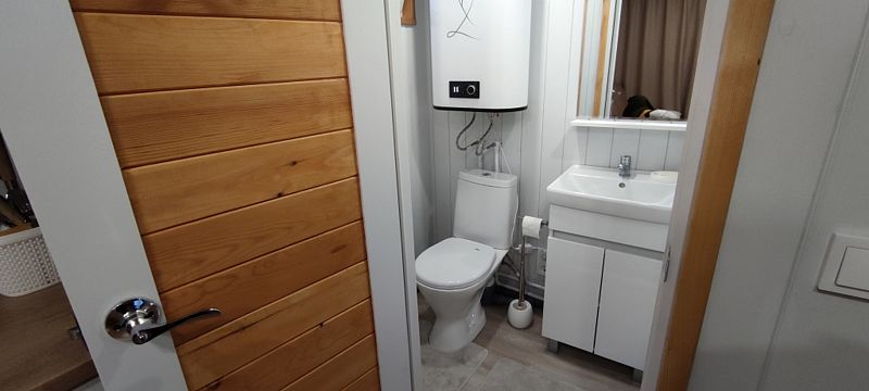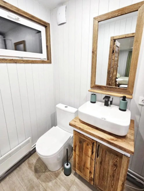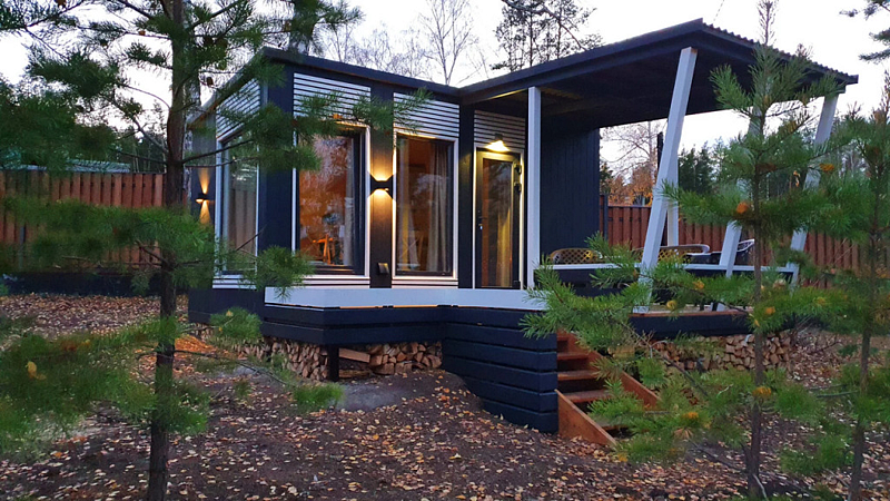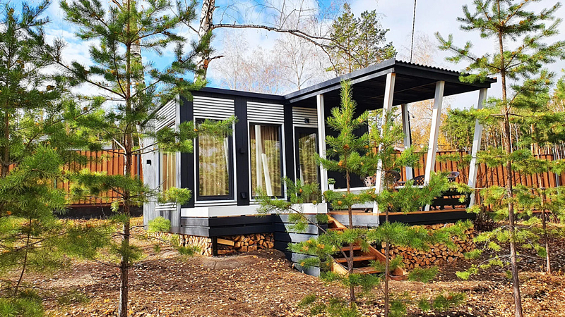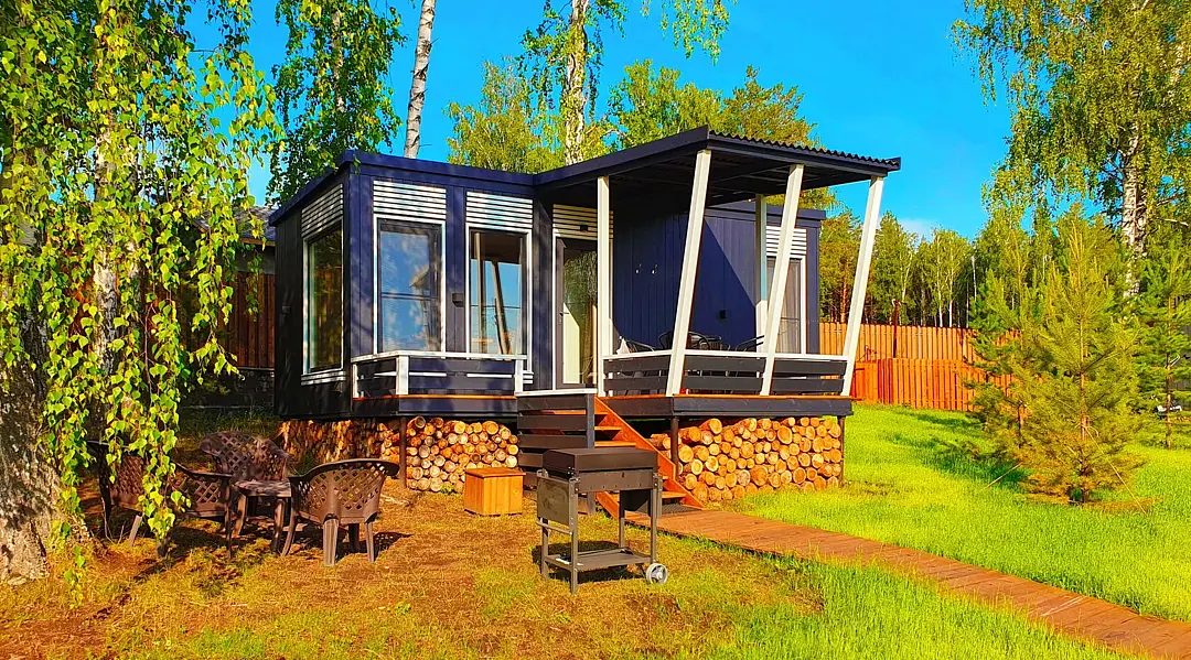 Уютный, с меблировкой и элементам декора из ретро-доски. Двухкомнатный домик обеспечивает дополнительный уют, благодаря тому, что пространство разделено на спальню и гостиную.