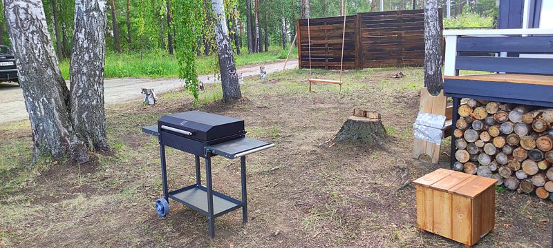 У каждого домика есть приватная зона, где расположен мангал, садовая мебель, качели. Пожарить шашлык, посидеть на открытом воздухе, любуясь деревьями и небом, послушать пение птиц, ощутить покой и умиротворение надвигающегося вечера - вот отличное завершение активного, полного впечатлений дня.