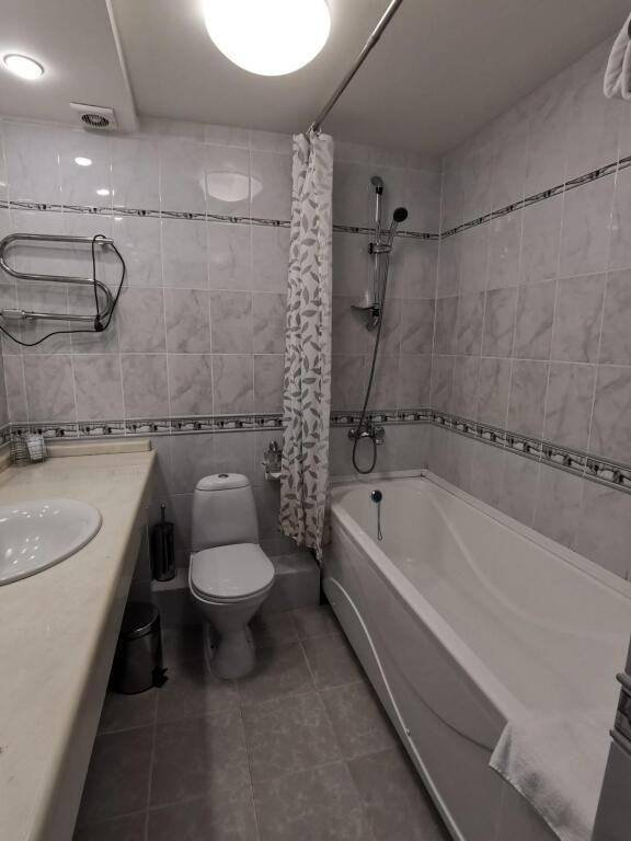 Двуспальная кровать (дуэт), диван двуспальный, журнальный столик, шкаф для одежды, телевизор, чайник. Душевая кабина, санузел, умывальник в номере. Завтрак включен.