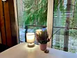 Выполнен в эко-стиле. С большой панорамной террасой. Расположен на высоте 3 метров, утопающий в зелени. Дом согревает большой Иранский камин, создавая неповторимую атмосферу уюта. Вечером окружающий лес загадочно подсвечивается изумрудным светом.