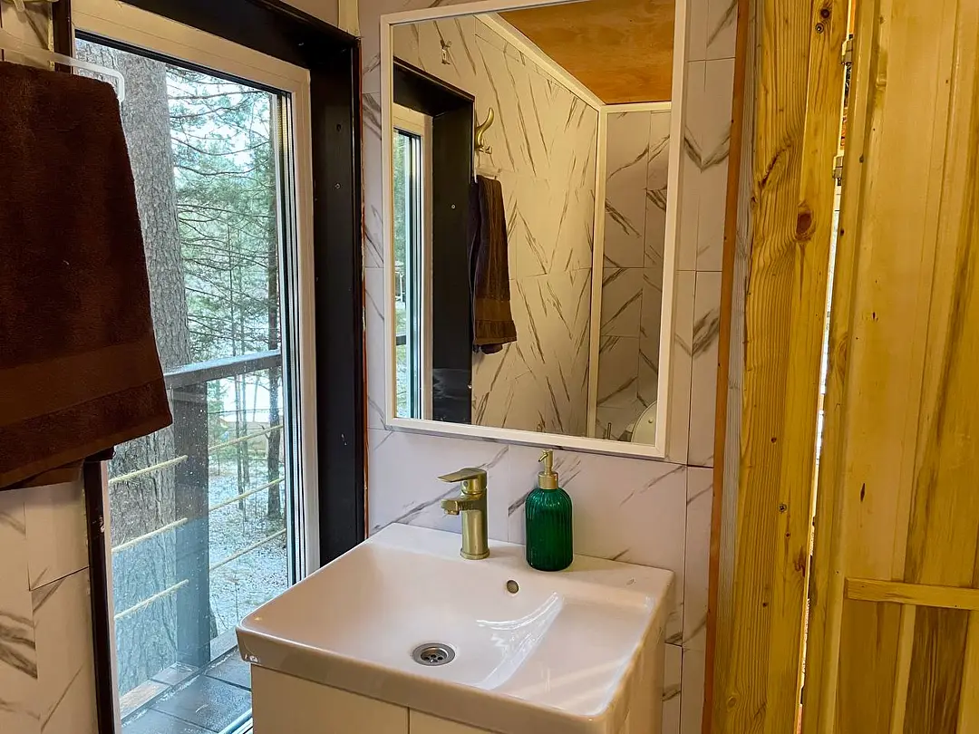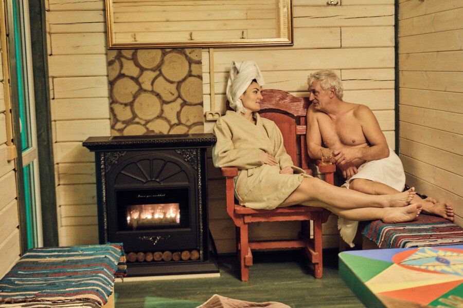 На территории глэмпинга вас ждет баня с уютной комнатой отдыха. На открытом воздухе вас ожидает особая атмосфера — вы сможете круглый год наслаждаться чаном с горячей водой в окружении живописного леса.