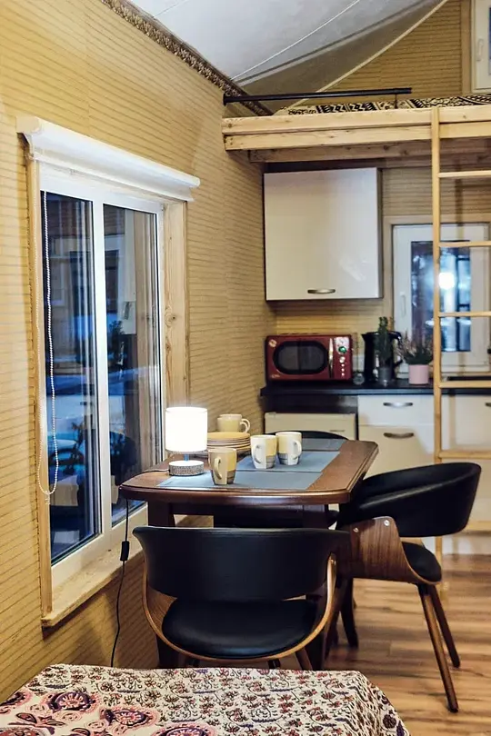 Для гостей подготовлены уютные домики со всеми удобствами, рассчитанные на разное количество проживающих. Каждый дом оснащен комфортными спальными местами, санузлом и доступом к Wi-Fi. Здесь вы найдете кухонную зону, оборудованную чайником, микроволновой печью и всей необходимой посудой.
